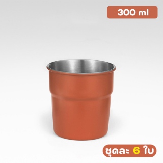(6ใบ/ชุด) แก้วพกพา แก้วน้ำสแตนเลส 304 แคมป์ปิ้งขนาด 300 ml. (สีส้ม)