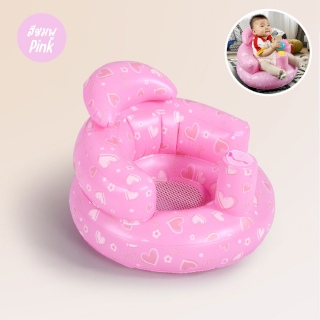 ที่นั่งเด็ก PVC แบบเป่าลม รุ่น Love ลายหัวใจ มีช่อตาข่ายระบายน้ำ (สีชมพู)