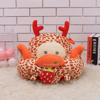 เก้าอี้โซฟาหัดนั่งสำหรับเด็ก แต่งหัวตุ๊กตาลายกวางสตรอว์เบอร์รี่น่ารัก (สีครีมจุดน้ำตาล)