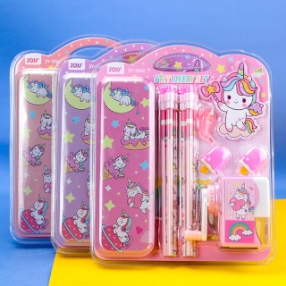 เซตอุปกรณ์เครื่องเขียนลายการ์ตูน เซตดินสอสำหรับเด็ก (ยูนิคอร์นคละสี)