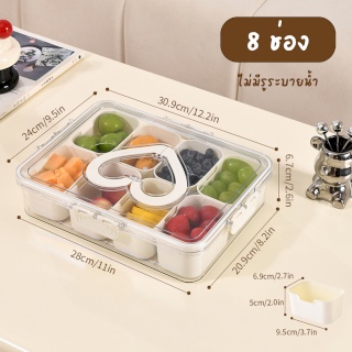 กล่องถนอมอาหาร กล่องเก็บอาหาร มีฝาปิด พร้อมหูหิ้ว และตัวล็อค (8 ช่อง)