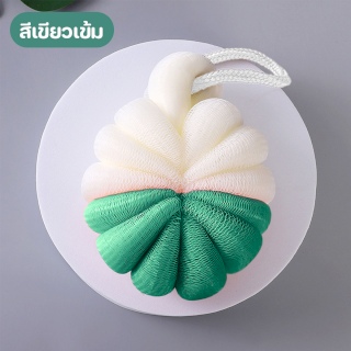 ฟองน้ำอาบน้ำ ฟองน้ำขัดตัว ฟองน้ำขัดผิว รูปทรงฟักทอง มีสายห้อย (สีเขียวเข้ม)