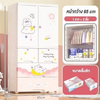 ตู้เสื้อผ้าพาสติก 4 ชั้น ลายการ์ตูนน่ารัก ขนาด 135x38x65 cm. (สีชมพู)