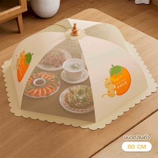 ฝาชีครอบอาหารแบบมุ้ง พับเก็บได้ มีสายห้อย ลวดลายสวยงาม ขนาด 80 cm. (ลาย orange)