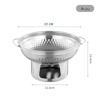 Alcohol-Stove หม้อสแตนเลส ทำอาหาร หม้อไฟอุ่นอาหาร มีช่องใส่แอกอฮอล์ หน้ากว้าง 22 cm (สีเงิน)