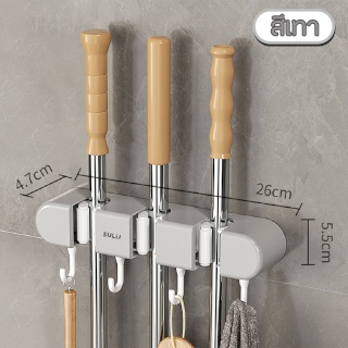 ที่แขวนของเอนกประสงค์ 3 ช่อง 4 ตะขอแขวน พร้อมสติ๊กเกอร์ติดผนัง (สีเทา)