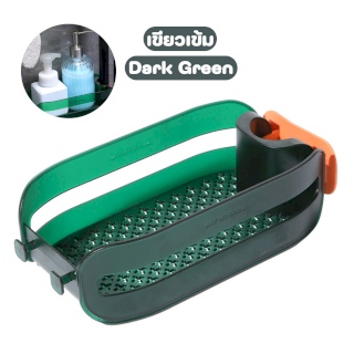 ถาดวางอุปกรณ์ล้างจาน ที่วางฟองน้ำ น้ำยาล้างจาน บนซิงค์ ติดกับก็อกน้ำ (สีเขียวเข้ม)