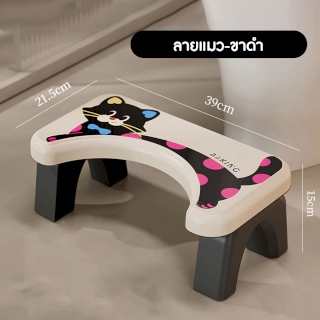 ที่วางเท้านั่งชักโครก เก้าอี้สำหรับวางเท้านั่งชักโครก ลายการ์ตูนน่ารัก น้ำหนักเบา (ลายแมว-ขาดำ)