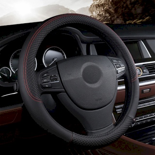 หุ้มพวงมาลัยรถยนต์ 38cm ปอกหุ้มหนัง PU หนังนุ่มสบายมือ (สีดำ)
