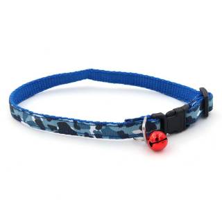 ปลอกคอสัตว์เลี้ยง พร้อมกระดิ่ง หน้ากว้าง 1 CM. ปรับความยาวได้ ลายพราง (สีน้ำเงิน)
