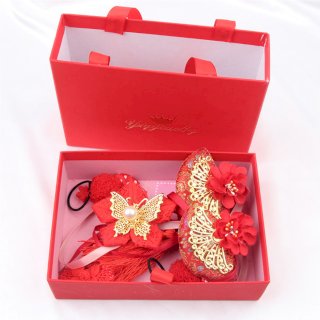 เซตอุปกรณ์แต่งทรงผมเด็ก สำหรับงานมงคลของจีน 10 ชิ้น สีแดง-ทอง