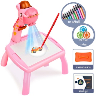 โต๊ะฉายภาพวาดรูป ขนาดเล็ก สำหรับเด็กรูปยีราฟ รูปเปลี่ยนได้ถึง 24 รูป พร้อมสีเมจิก 12 สี (สีชมพู)