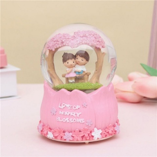Snowball Music box 1812C B กล่องดนตรีหิมะ คริสตัลบอล มีเสียงดนตรี แถมฟรี! ถ่าน AAA 3 ก้อน สีชมพู (คู่รักเด็กหญิงเด็กชาย)