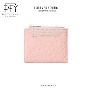 PERFECT FOR YOU กระเป๋าสตางค์ใบสั้น 2 พับ ปั้มลายรูปหมี No:8303-013 (สีชมพู)