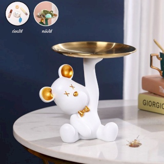 ที่วางของใช้อเนกประสงค์ รูปหมีถือถาด ขนาด 15x15x17 cm พร้อมกาวสองหน้าติดถาด (สีขาว)