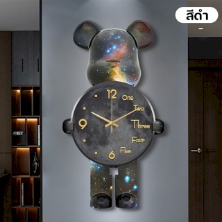 นาฬิกาติดผนัง นาฬิกาตกแต่งบ้านแบบเข็ม รูปหมี ขนาด 31x60 cm มีที่แขวนติดผนัง (สีดำ)