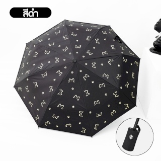 ร่มกันแดดพับได้ ร่มพับแบบพกพา พับได้ กันแดดกันฝน ลาย Cat ปุ่มกดกางอัตโนมัติ (สีดำ)