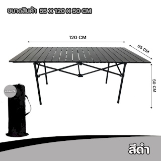 โต๊ะแคมป์ปิ้งพับได้ พกพา แบบสี่เหลี่ยม ขนาด 55x120x50 cm พร้อมถุงเก็บ (สีดำ)