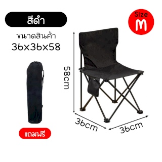 เก้าอี้สนามพับได้ มีพนักพิง แบบพกพา ขนาด 36x36x58 (M) พร้อมถุงเก็บ (สีดำ)