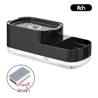 ที่วางฟองน้ำ น้ำยาล้างจาน มีที่ปั้มน้ำยาล้างจาน เติมน้ำยาล้างจานได้ พร้อมฟองน้ำล้างจาน (สีดำ)