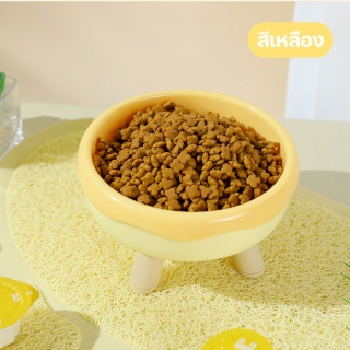 ชามอาหารสัตว์ ชามใส่อาหารสัตว์ พลาสติก PP ไม่เป็นอันตราย ทรงโดนัท (สีเหลือง)