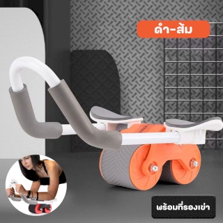 ล้อกลิ้งออกกำลังกาย ลูกกลิ้งบริหารกล้ามเนื้อแบบ 2 ล้อ มีที่วางแขน พร้อมแผ่นรองเข่า (สีดำ-ส้ม)