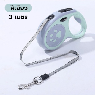 สายจูงสุนัขแบบยืดหดได้ สายจูงลากสัตว์เลี้ยงแบบม้วนเก็บ ยาว 3 เมตร หยุดได้ด้วยปุ่มเดียว (สีเขียว)