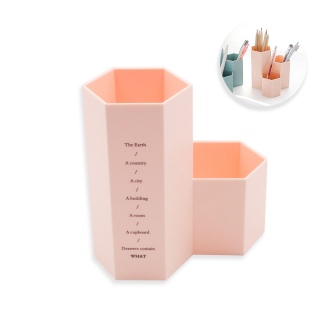 ชุดจัดเก็บอุปกรณ์เครื่องเขียน ทรง 6 เหลี่ยม 3 ช่อง สีชมพู
