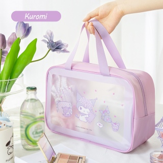 กระเป๋าใส่เครื่องสำอาง กระเป๋าใส่ของหนัง PVC กันน้ำ มีซิป ลายการ์ตูนน่ารัก (สีม่วง)