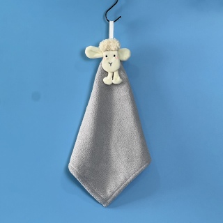 ผ้าเช็ดมือนาโนรูปสัตว์น่ารัก พร้อมสายห้อย ซึมซับน้ำได้ดี (ลายแกะ-เทา)