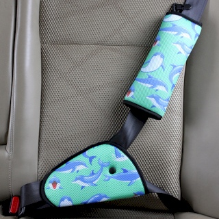 ที่รองสายคาดเข็มขัดนิรภัย พร้อมปอกคาดเข็มขัดนิรภัยในรถ สำหรับเด็ก (ลายปลาโลมา-พื้นเขียว)
