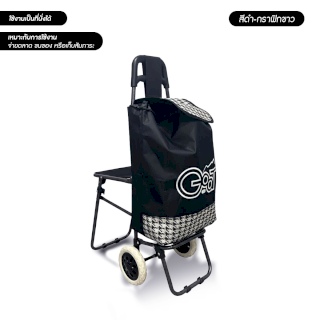 Go-at กระเป๋าล้อลากช๊อปปิ้ง รุ่น GA-4633 รถเข็นลากของ สำหรับจ่ายตลาด หรือแคมปิ้ง ล้อขนาดใหญ่ กันน้ำ (สีดำ-กราฟิกขาว)