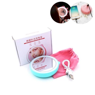 แบตสำรอง 5200 mAh พร้อมกระจกแต่งหน้า มีไฟ LED พร้อมถุงผ้ากำมะยี่ (สีฟ้า)