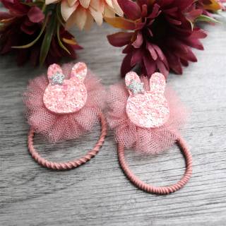 ยางมัดผมแฟนซี 2 เส้น ลายกระต่าย สีชมพูเข้ม