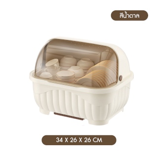 ที่คว่ำจานสไตล์มินิมอล ที่คว่ำภาชนะ ที่เก็บจาน มีฝาครอบ ขนาด 34x26x26 cm. (สีน้ำตาล)