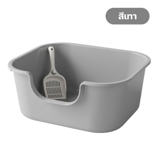 กระบะทรายแมว ขอบสูง ไซส์จัมโบ้ พร้อมที่ตัก ขนาด 47x40x20 cm. (สีเทา)