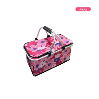 กระเป๋าตระกร้าเก็บความร้อน-เย็น กระเป๋าตระกร้าใส่ของเก็บอุณหภูมิ พับเก็บได้ ขนาด 27x47x22 cm (สีชมพู)