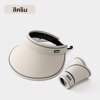 หมวกแฟชั่นกันแดด หมวกปีกกว้างกันแดด UPF50+ ม้วนเก็บได้ ปรับระดับรอบศีรษะได้ (สีครีม)