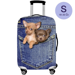 ถุงคลุมกระเป๋าเดินทางผ้า ยิดหยุ่นได้ดี ไซส์ S ขนาด 18-20 นิ้ว (ลายหมาชิวาว่า)