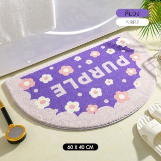 พรมเช็ดเท้าครึ่งวงกลม พรมปูหน้าห้องน้ำ ซับน้ำได้ดี ขนาด 40x60cm ลายน่ารัก (ลาย Purple)
