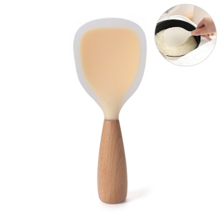 ทัพพีตักข้าว ซิลิโคน ทนความร้อน ด้ามไม้ สไตล์มินิมอล (สีส้ม)