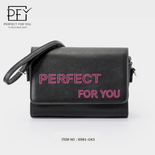 PERFECT FOR YOU กระเป๋าสะพายสกรีน PERFECT FOR YOU No:6981-043 (สีดำ-แดง)