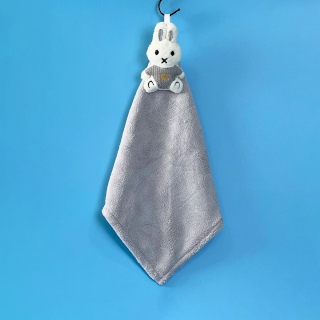 ผ้าเช็ดมือนาโนรูปสัตว์น่ารัก พร้อมสายห้อย ซึมซับน้ำได้ดี (ลายกระต่าย-เทา)
