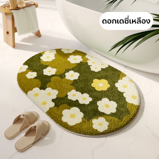 พรมเช็ดเท้าขนนุ่ม มียางกันลื่น ซับน้ำได้ดี ลายดอกไม้ 40x60 cm. (ลายดอกเดซี่เหลือง)