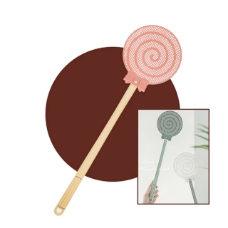 ไม้ตีแมลงวัน ไม้ตียุง พลาสติกย่างดี หนาด้ามยาว (สีชมพู-ด้ามโอรส)