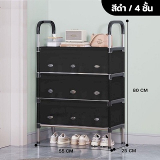 ชั้นวางรองเท้า ชั้นวางรองเท้ามีผ้าปิด PVC แบบ 4 ชั้น ขนาด 55x25x80 cm (สีดำ)