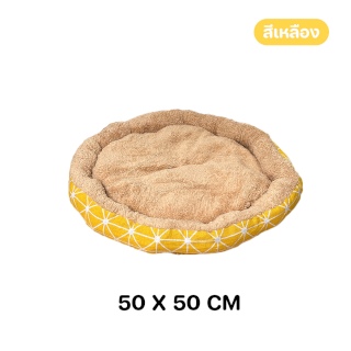ที่นอนสัตว์เลี้ยง ที่นอนแมว เบาะนอนแมว แบบวงกลม ลายน่ารัก ขนาด 50x50 cm. (สีเหลือง)