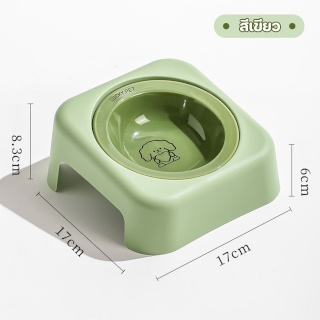 ชามอาหารสัตว์ ชามใส่อาหารสัตว์เซรามิค ขนาด 170 ml ไม่เป็นอันตราย ฐานรองเป็นแบบเอียง (สีเขียว)