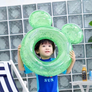 ห่วงยางเป่าลม สำหรับเด็ก สีสันสดใส ลายน่ารัก มีกลิตเตอร์ด้านใน (สีหมีเขียว)
