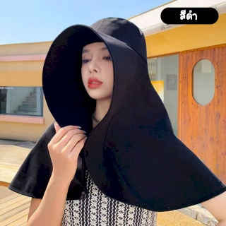 หมวกแฟชั่น หมวกปีกกว้างกันแดด ปกป้องได้ดี คลุมไหล่ คลุมหลังได้ (สีดำ)